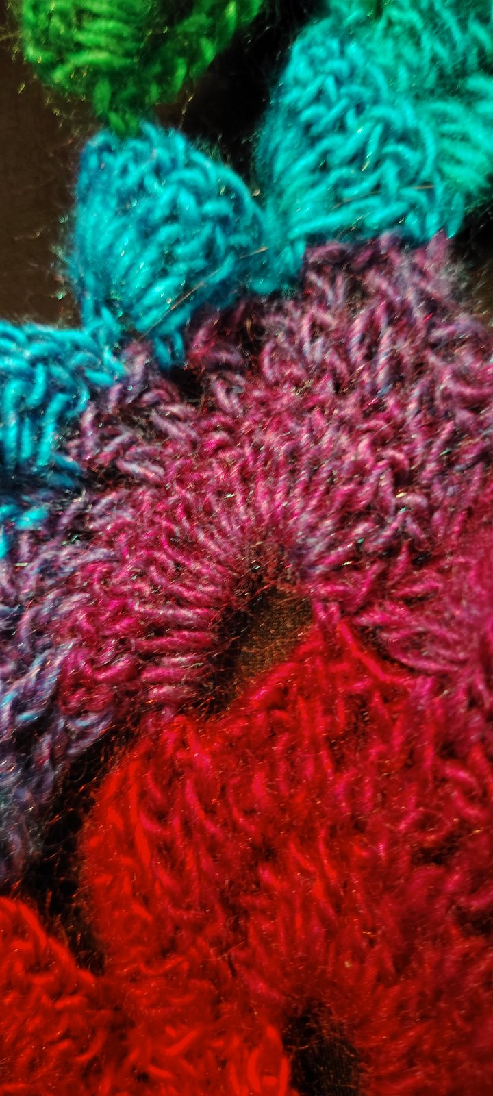 Levélformái lágyan hullámzanak, ahogy a fonal színei egymásba simulnak – mintha a tavasz és az ősz egyszerre sétálna végig rajta.