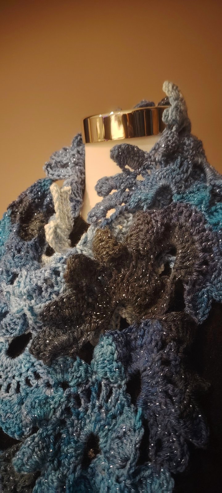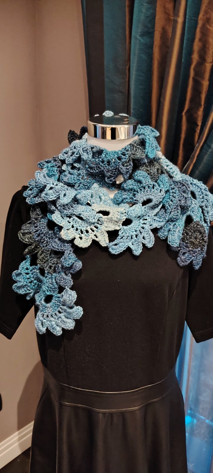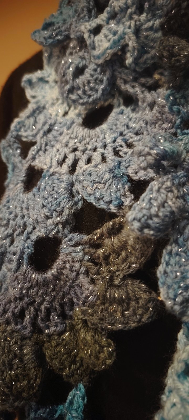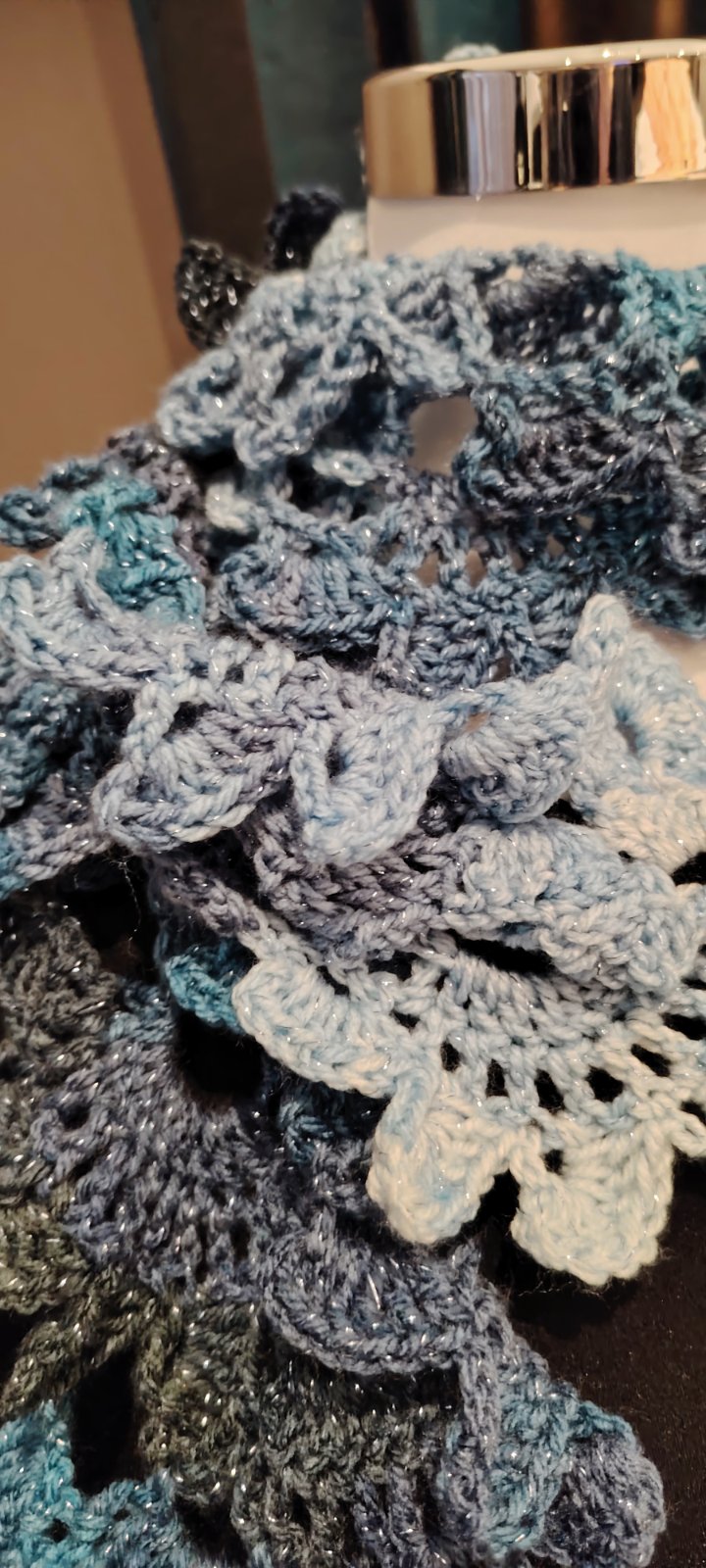 Kék és fehér árnyalatok horgolt harmóniája, apró csillogásokkal. Légies, mint a friss hó, mégis meleg, mint a kézzel készített szeretet.